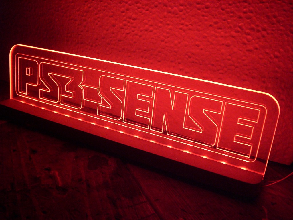 Het eerder gegraveerde led bordje voor PS3Sense maakte een hoop bezoekers enthousiast.